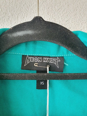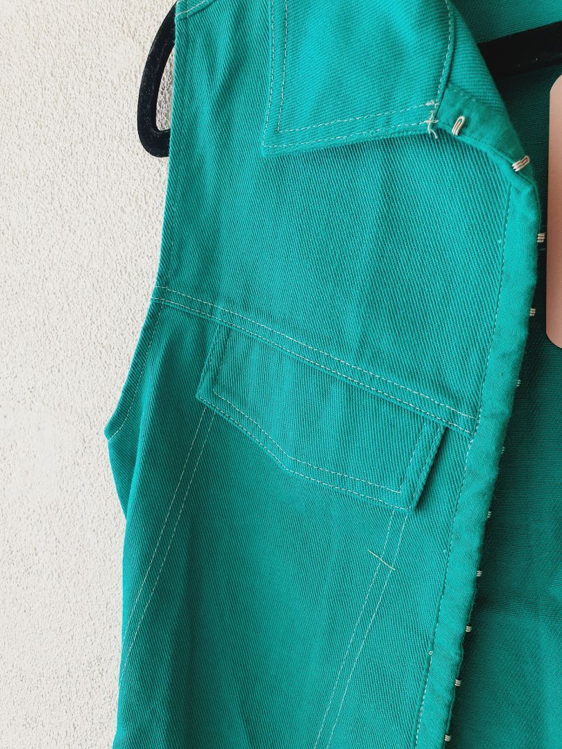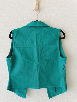 TURQUOISE DENIM VEST W/ HOOK CLOSURE