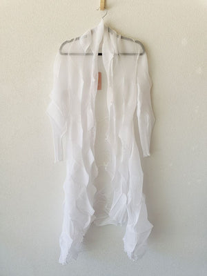 Textured white long sleeve flowing coat