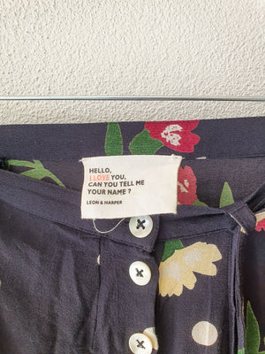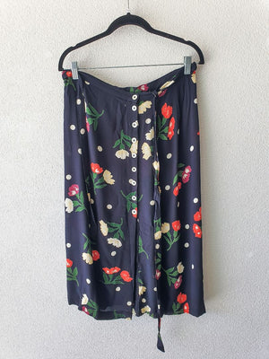 Navy Floral button skirt